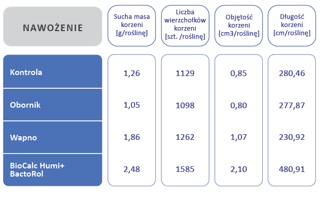Oczywiście aby przywrócić prawidłowe funkcjonowanie żywego organizmu jakim powinna być gleba potrzeba przede wszystkim wprowadzenia znaczenie większej ilości materii organicznej, choćby z mieszanek poplonowych, oborników, pofermentów etc. Niewątpliwie regularne stosowanie nawozu granulownego na bazie kredy jeziornej BioCalc Humi+ z konsorcjum BactoRol jest pierwszym krokiem w dobrą stronę aby zwiększyć potencjał plonotwórczy upraw.