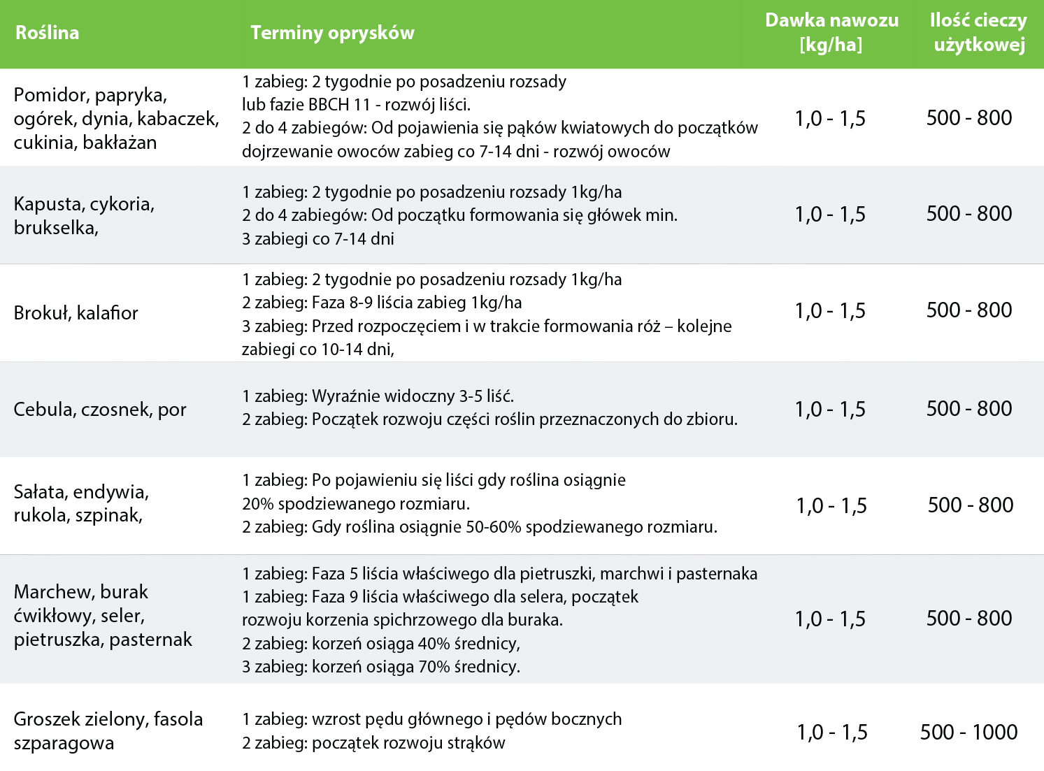 Nawóz ten można stosować jako standardowe źródło wapnia w technologii uprawy oraz interwencyjnie w celu szybkiej regeneracji plantacji po wystąpieniu stresu np. suszy, podtopienia, czy gradobicia.